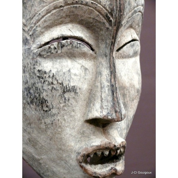 Superbe masque de danse en bois et kaolin, typique de l'ethnie Fang du Gabon